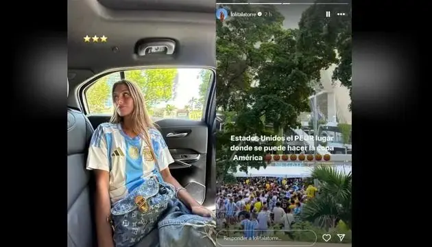 Lola Latorre, hija de Yanina y Diego Latorre, compartió fotos de ella antes de ingresar al Hard Rock y horas después subió un video quejándose de la organización del evento: “Estados Unidos, el peor lugar donde se puede hacer la Copa América”.