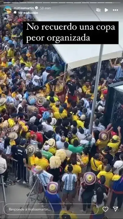 A pesar de no haber tenido problemas en el ingreso, el periodista Matías Martín también utilizó sus redes para hacer un descargo ante el mal manejo que hubo en la entrada del estadio: “No recuerdo una copa peor organizada”, escribió junto a una foto donde miles personas estaban fuera del Hard Rock.