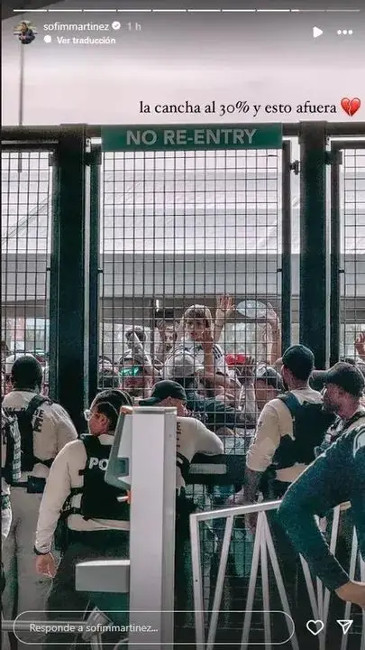 Asimismo, la periodista deportiva Sofí Martínez, quien cubrió tanto el partido como la previa, empatizó con quienes no pudieron ingresar a la final: “La cancha al 30% y esto afuera”, junto a una imagen de los hinchas que quedaron afuera.