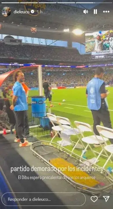 Por otro lado, Diego Leuco se quejó de la demora del partido dentro del estadio: «Partido demorado por los incidentes. El Dibu espera precalentando con los arqueros», escribió.